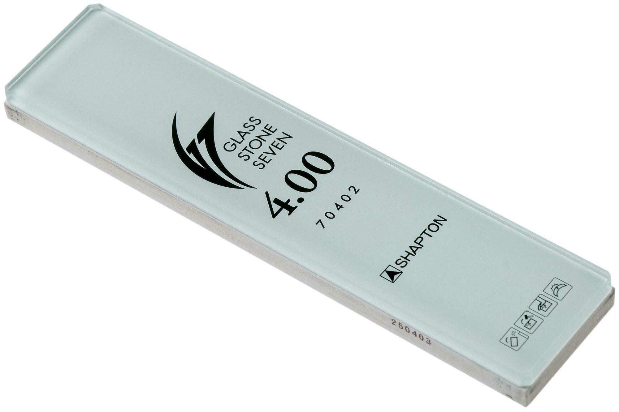 Shapton Glass Stone Seven 4.00 micron je jemný brúsny kameň z kolekcie Shapton Glass Stone Seven. Tento kameň je porovnateľný s japonským vodným kameňom so zrnitosťou 3000. Je určený predovšetkým na brúsenie relatívne ostrých a nepoškodených nožov. Ak chcete brúsiť tupé nože, najlepšie je použiť kamene Glass Stone seven s vyšším mikrónom na dostiahnutie lepších výsledkov.