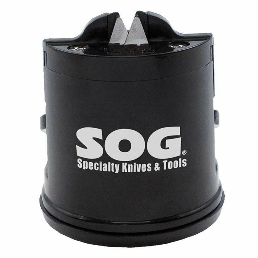 Prenosná stolná brúska SOG COUNTERTOP SHARPENER s robustným telom z ľahkého a kvalitného GRN, vhodná na akýkoľvek rovný neporézny povrch a aktivuje sa pákou.