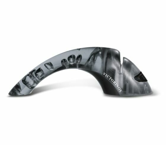 Brúska Victorinox Knife Sharpener Black na kuchynské nože s keramickými kotúčmi. Má masívnu rukoväť, vďaka ktorej sa ľahko drží a kotúče majú prednastavený uhol brúsenia, rozdelený na 2 stupne podľa potreby.