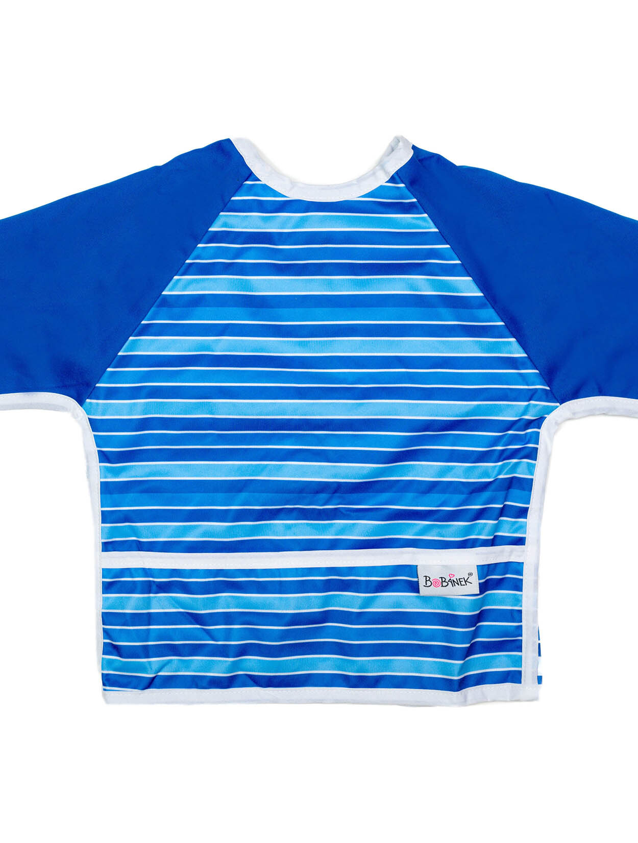 Bryndáček s dlouhým rukávem.Miminka ráda papají sama a s tímto bryndáčkem se nemusíte bát, že bude zase vše ušmudlané. Zakrývá celou vrchní část těla se zavazováním na tkaničky. Vhodné na krmení, ale