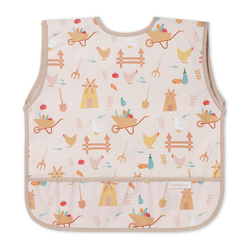 - Fartuszek jest dostępny w dwóch rozmiarach: dla dzieci od 6 miesięcy do 2 lat oraz od 2 lat do 4 lat -chodzących do żłobka i przedszkola.