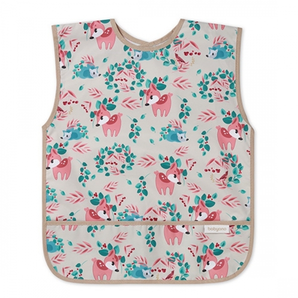 - Fartuszek jest dostępny w dwóch rozmiarach: dla dzieci od 6 miesięcy do 2 lat oraz od 2 lat do 4 lat -chodzących do żłobka i przedszkola.