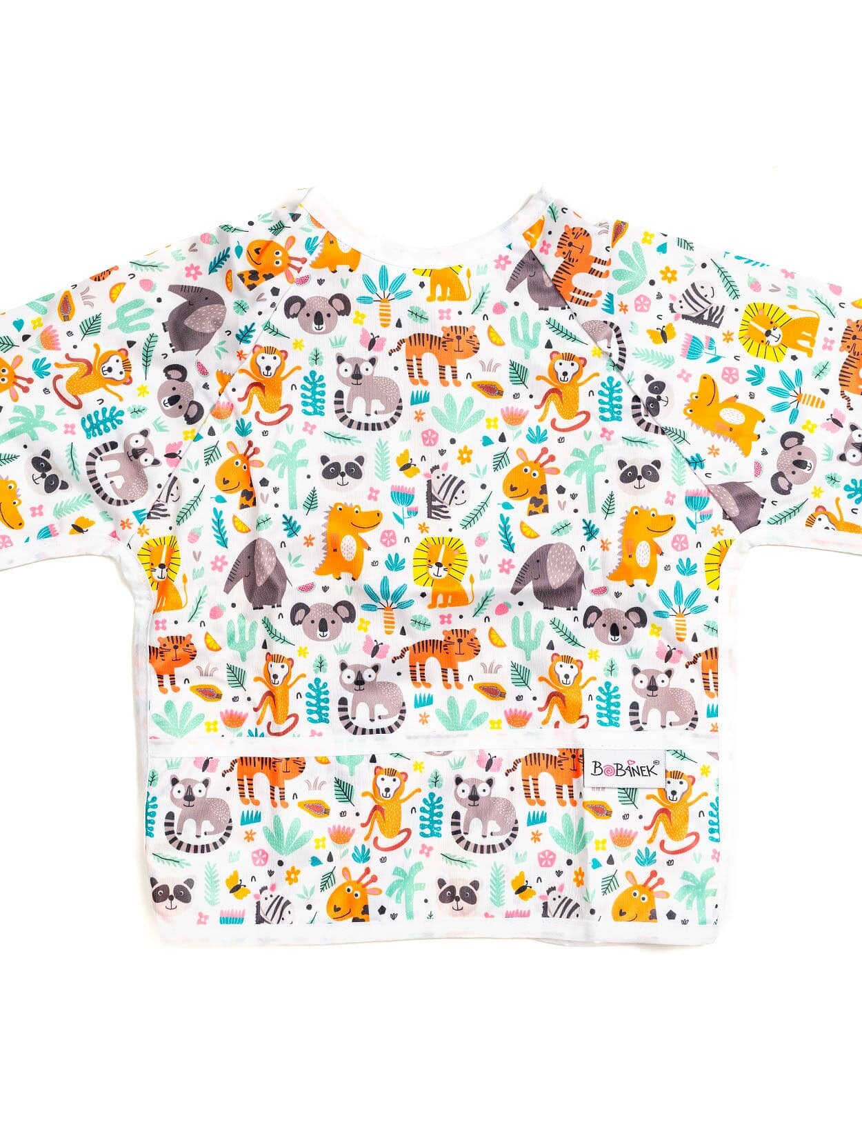 Bryndáček s dlouhým rukávem.Miminka ráda papají sama a s tímto bryndáčkem se nemusíte bát, že bude zase vše ušmudlané. Zakrývá celou vrchní část těla se zavazováním na tkaničky. Vhodné na krmení, ale