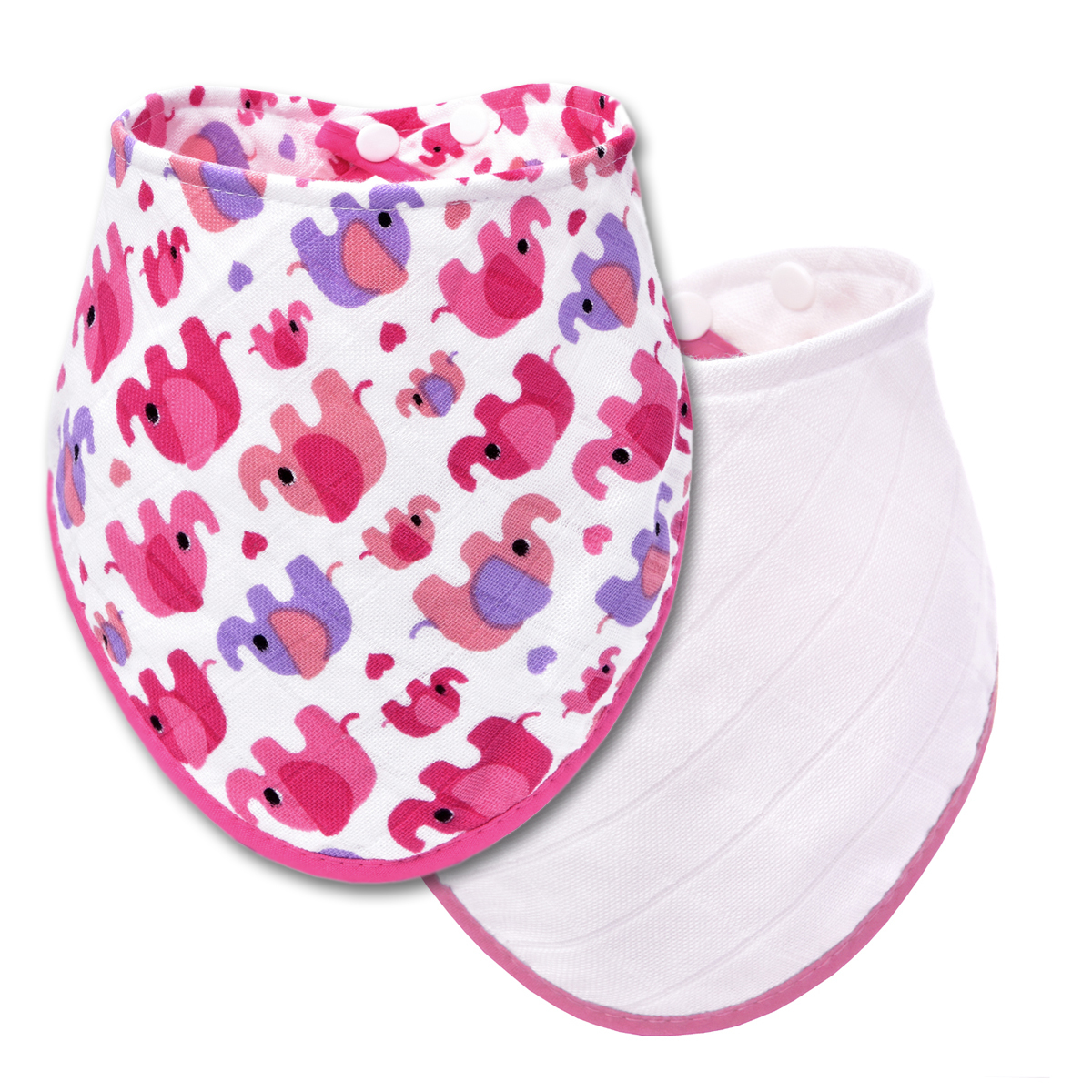 BIO Bambusový slintáček, pink elephants + pink / růžoví sloni + růžová - 2 ks