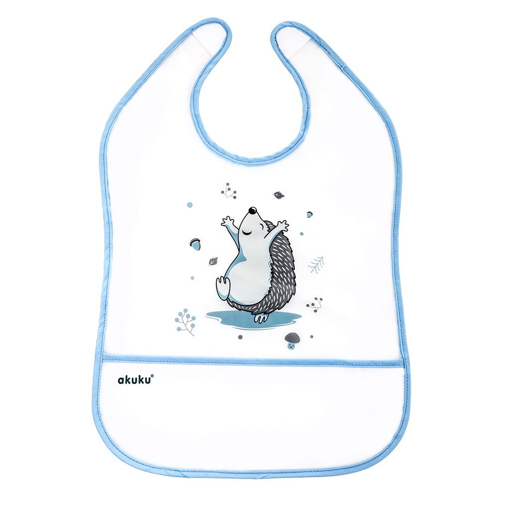 Barevný dětský bryndáček s kapsičkou Akuku účinně ochrání oblečení Vašeho dítěte před znečištěním během jídla nebo hraní. Vyrobeno z lehkého, měkkého a snadno omyvatelného materiálu EVA (Ethylen vinyl acetát). Vybaven velkou kapsou, která zadrží zbytky jídla. Jednoduché zapínání na suchý zip. Snadno se udržuje v čistotě. Ihned po jídle doporučujeme bryndáček umýt teplou vodou a dětským mýdlem.