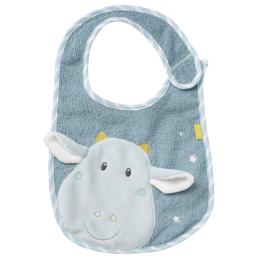 Měkký froté bryndák vyvolá úsměv na vaší tváři. Aplikace v podobě ušatého dráčka působí vesele. Bryndák je vysoce absorpční, šetrný k pokožce a je spolehlivou ochranou proti ušpinění při jídle. Bryndák se upevňuje na suchý zip a dá se prát.