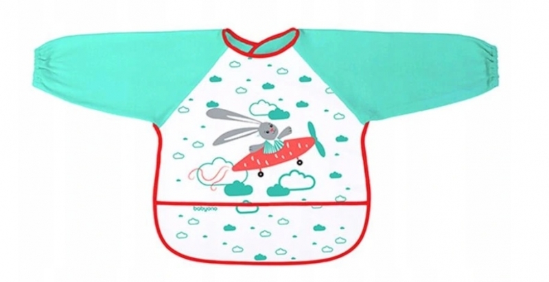 BabyOno Zástěrka, bryndák nepromakavý s dlouhým rukávem a kapsíčkou - zelený - 24m+