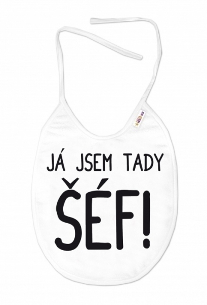 Nepromokavý bryndáček, 24 x 27 cm - Já jsem tady Šéf!, Baby Nellys, bílý