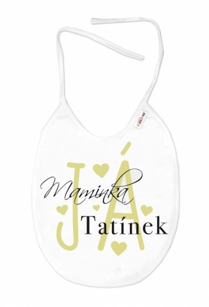 Nepromokavý bryndáček, 24 x 27 cm - Maminka, Tatínek, JÁ, Baby Nellys - bílý