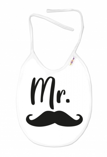 Nepromokavý bryndáček Mr., 24 x 27 cm - bílo/černý, Baby Nellys