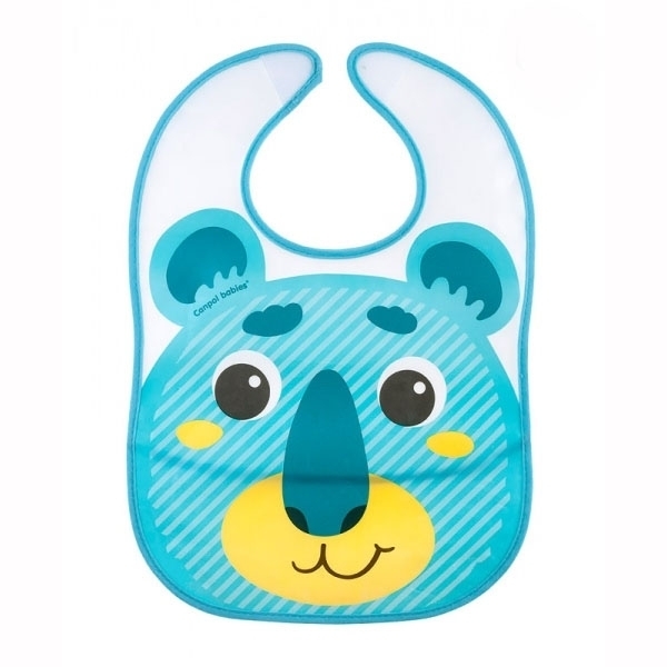 Měkký plastový bryndák s velkou praktickou kapsou, která chrání oblečení před ušpiněním.