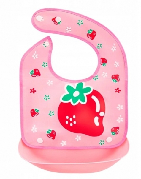 Silikonový bryndáček s kapsičkou Jahůdka, růžová