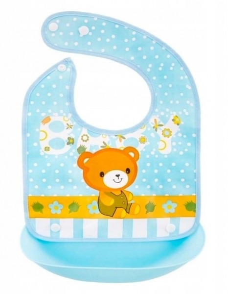 Silikonový bryndáček s kapsičkou Medvídek, modrý