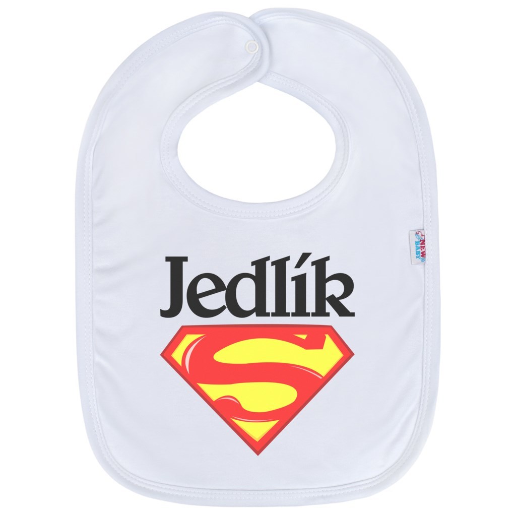 Krásný bavlněný dětský bryndáček s vtipným obrázkem New Baby. Bryndáček je zdoben nápisem Jedlík. Barvy použité k potisku jsou certifikované a vhodné pro miminka. Je vyroben z příjemného a kvalitního materiálu. Bryndáček má bílé lemování a je vyroben ze dvou vrstev bavlněné látky. Zapínání na cvoček. Dětský bryndáček chrání oblečení miminka před znečištěním při jídle a pití. Složení: 100 % bavlna. Rozměry: dxs cca 36x26 cm.- Produkt české značky