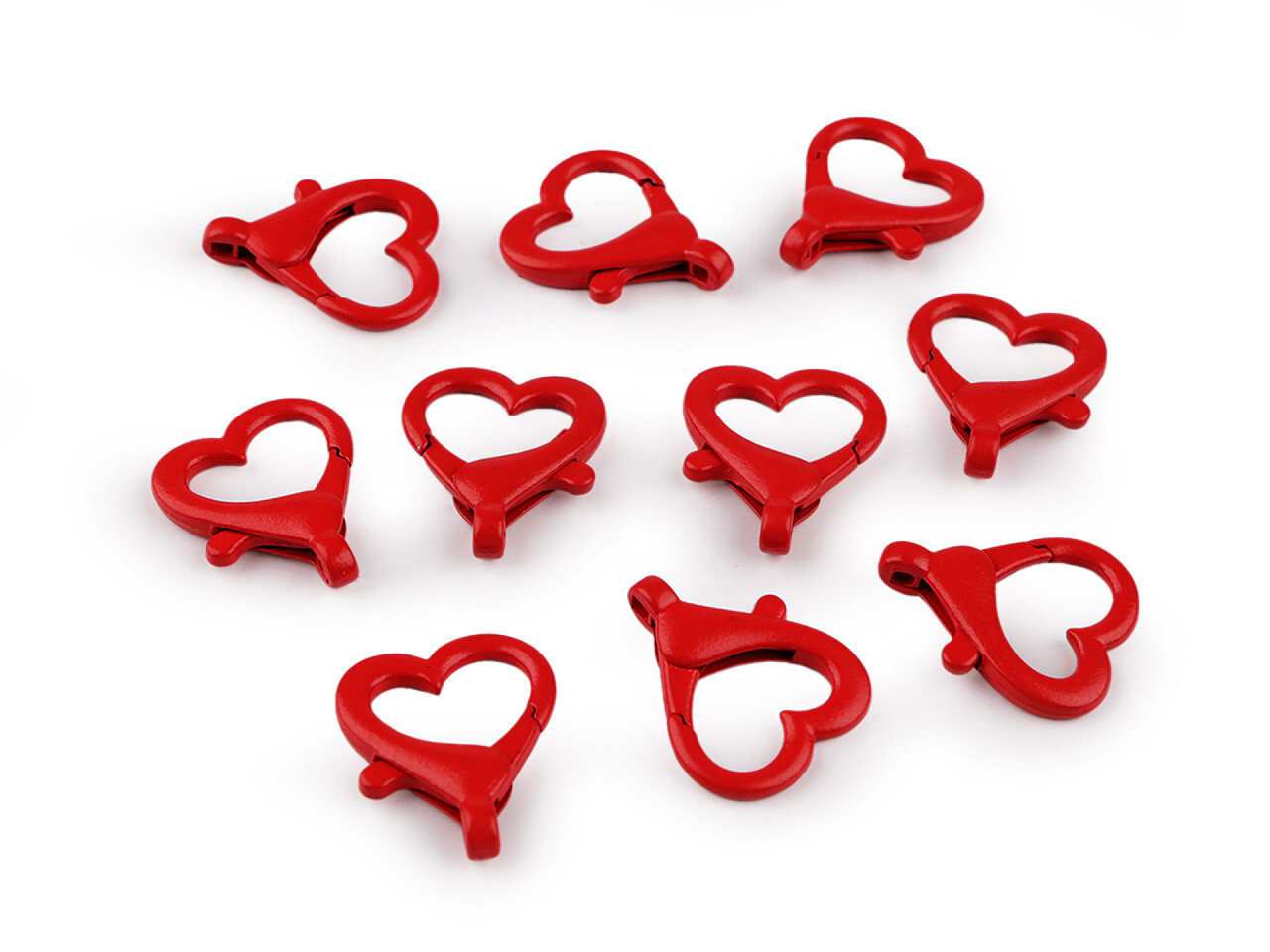 Kovová lakovaná karabina srdce průvlek 15 mm - 10 ks - 1 červená