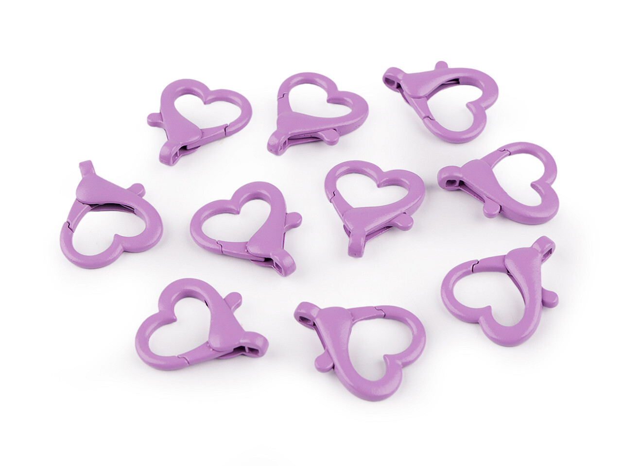 Kovová lakovaná karabina srdce průvlek 15 mm - 10 ks - 3 fialová lila
