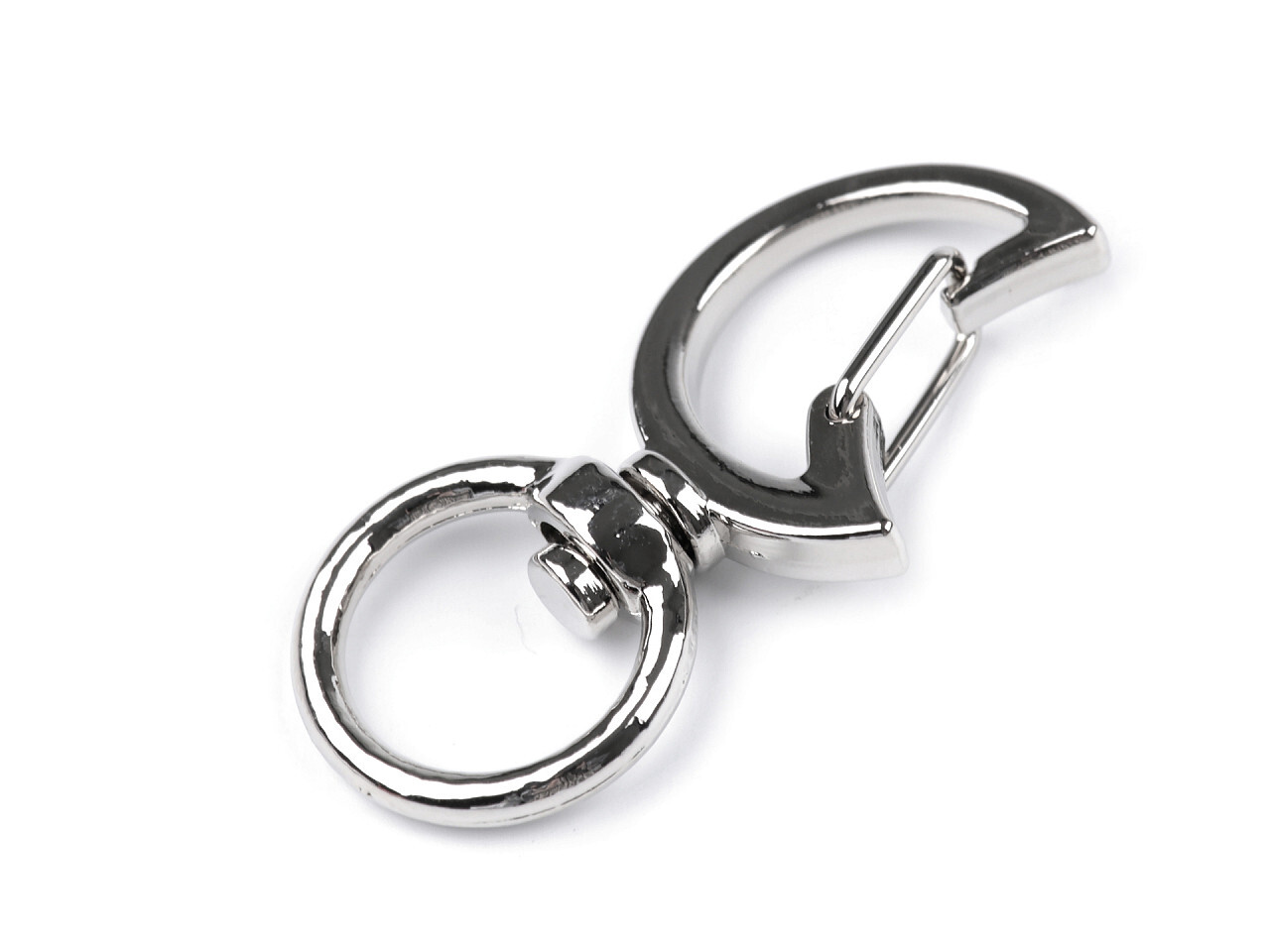 Designová kovová karabina vynikne na kabelkách, městských batozích, ale i jako elegantní klíčenka. Její tvar připomíná kočku. Je otočná.