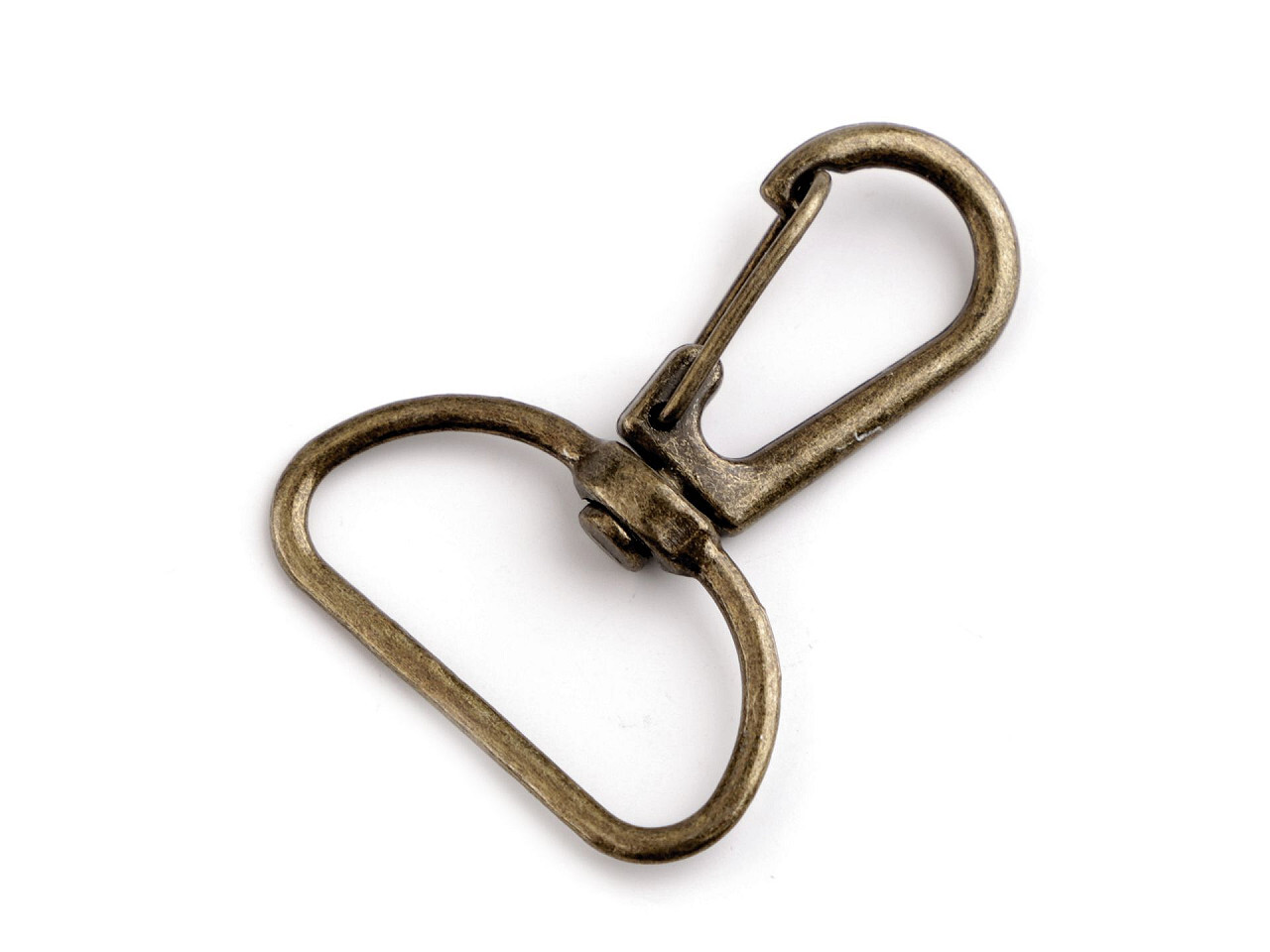 Kovová karabina s obrtlíkem průvlek 25 mm - 20 ks - staromosaz