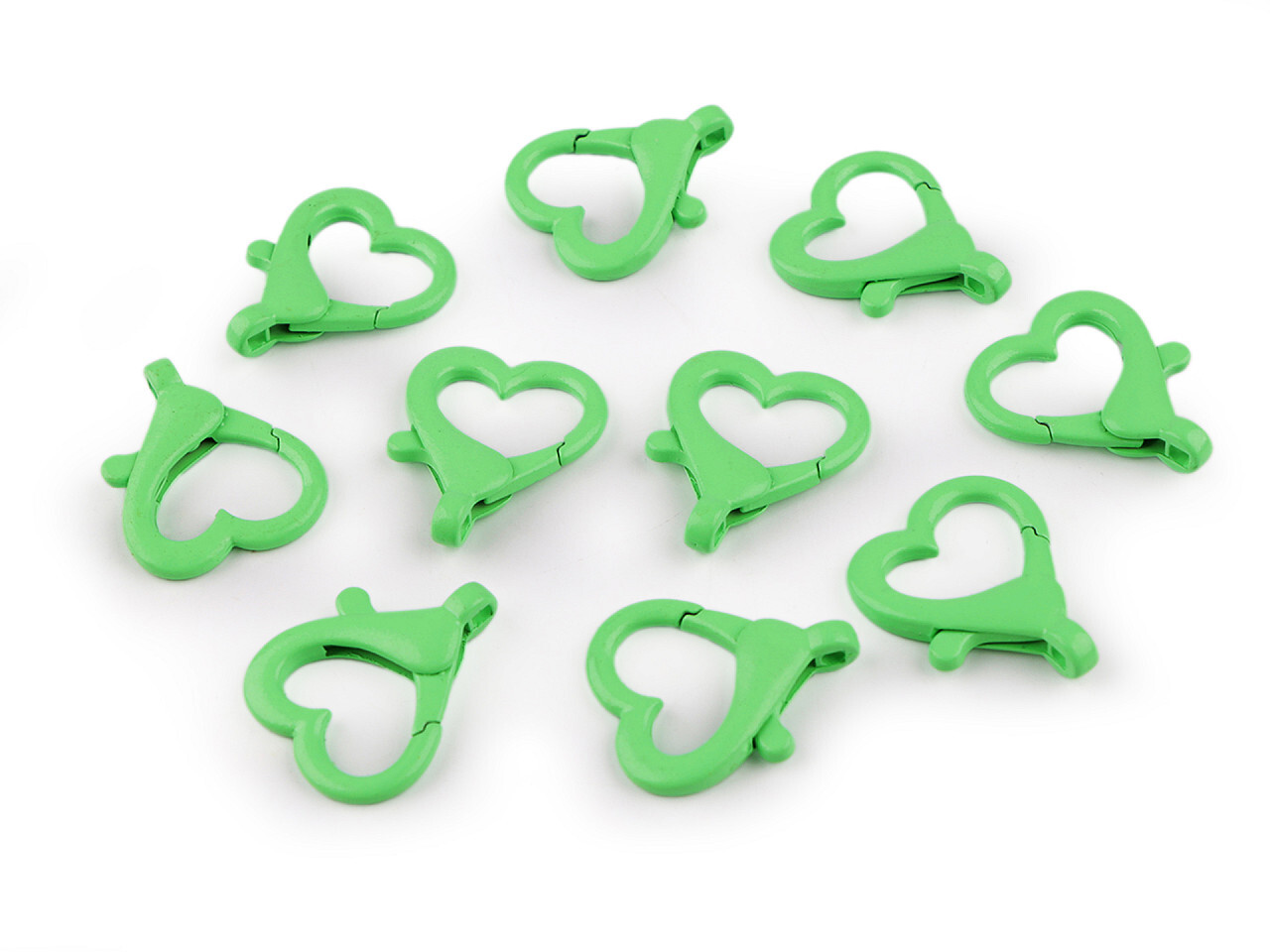 Kovová lakovaná karabina srdce průvlek 15 mm - 10 ks - 4 zelená past.sv.