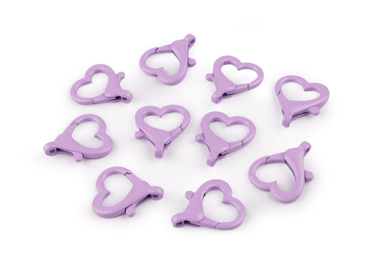 Kovová lakovaná karabina srdce průvlek 15 mm - 10 ks - 2 fialová sv.