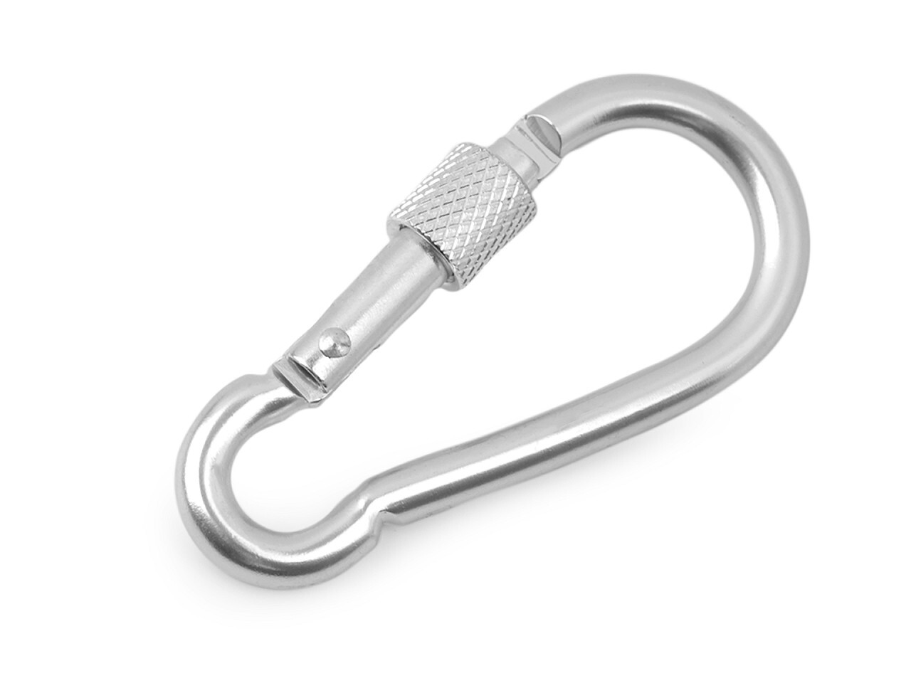 Hliníková karabina má díky použitému materiálu velmi nízkou hmotnost. S pojistkou nehrozí, že se samovolně otevře. Karabinu můžete využít na výrobu klíčenek.