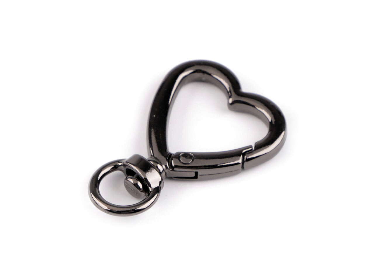 Kovová karabina s obrtlíkem srdce průvlek 10 mm - 10 ks - 4 nikl černý