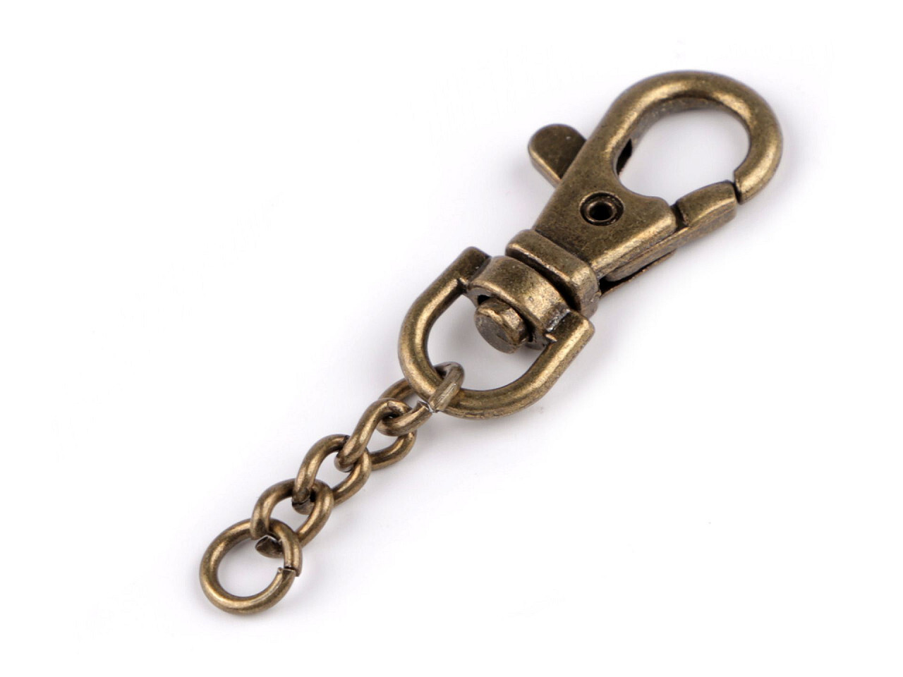Kovová karabina s obrtlíkem průvlek 8 mm s řetízkem - 10 ks - 3 staromosaz