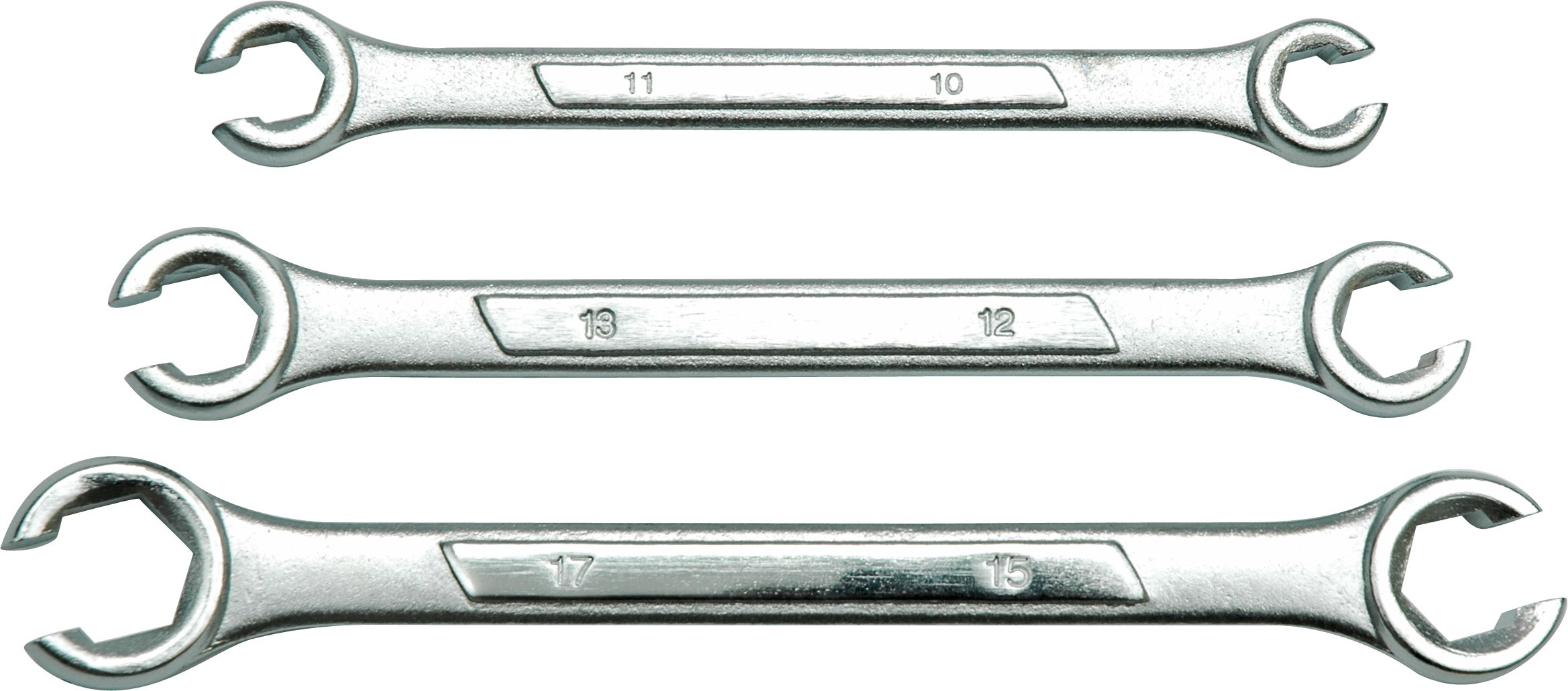 Sada klíčů brzdové hadice. Polootevřená konstrukce umožňuje volný přístup k maticím brzdové hadice. Rozsah velikostí 11x11mm, 12x13mm, 15x17mm.