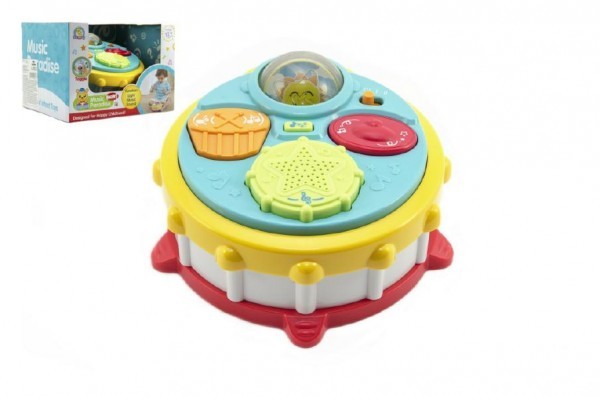 Dětský bubínek plast 16cm na baterie se světlem se zvukem v krabici 12m+
