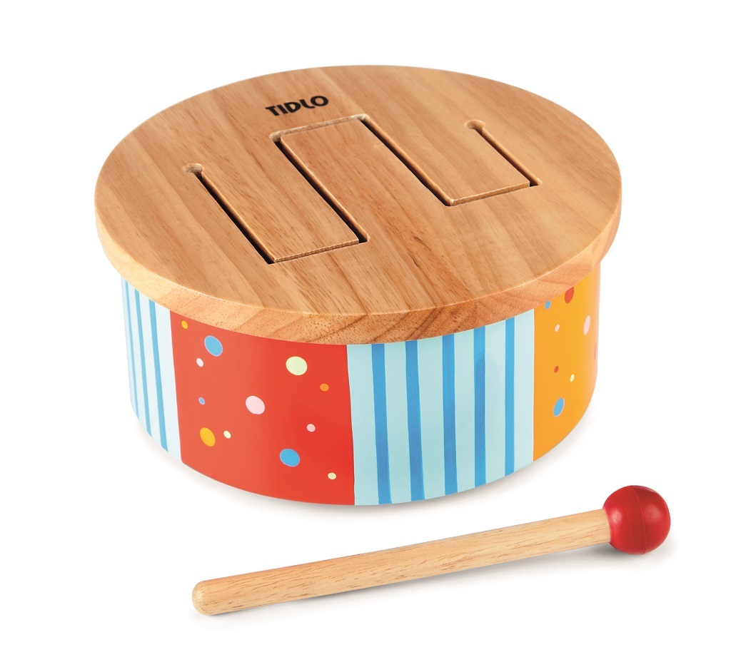 Rozvíjejte hudební talent Vašich dětí s tímto dřevěným bubnem Tidlo. Tento krásný dřevěný nástroj je ideální pro úvod do světa hudby. Jak buben tak palička jsou navrhnuty pro malé dětské ruce. Zářezy na vrchní straně bubnu vytvářejí různé tóny zvuku, podle toho, kam se udeří paličkou. Podporuje kreativitu a představivost, rozvíjí koordinaci ruka-oko, jemnou motoriku a zručnost. Vyrobeno z kvalitních materiálů z odpovědných zdrojů. Odpovídá evropské bezbečnostní normě. Hračky anglické značky TIDLO Timeless Toys jsou, jak název napovídá, nadčasové dřevěné hračky vyráběné společností John Crane již od roku 1984. Všechny hračky, jež vychází z moderních trendů, nabízejí vynikající hodnotu, kvalitu, design a bezpečnost pro děti.