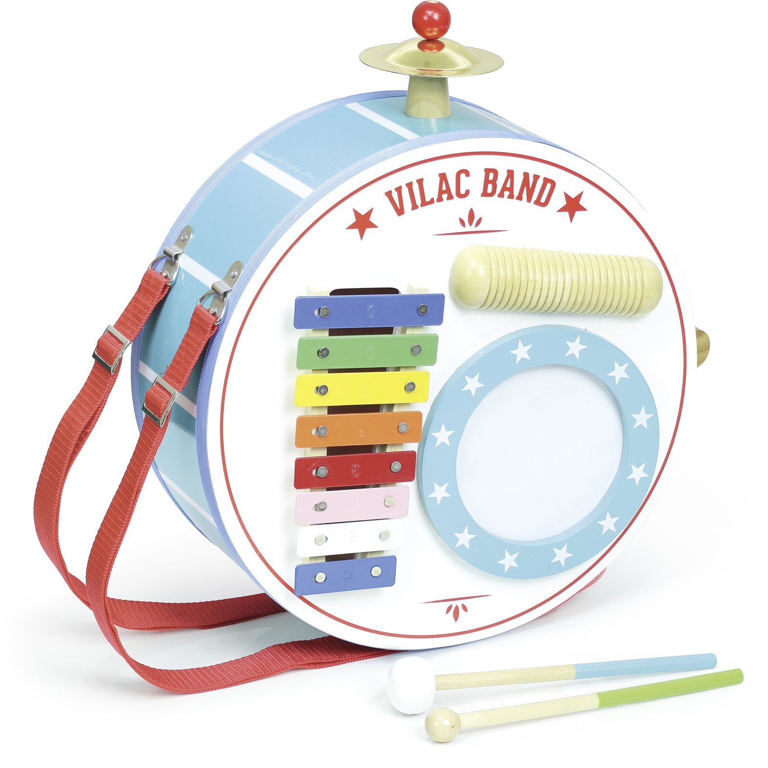 Jednočlenný orchestr! Vaše dítě může zároveň hrát na buben, xylofon a další mini nástroje. Obsahuje nastavitelné popruhy. Hračky Vilac mají značku francouzské agentury ADEME, to znamená, že tyto dřevěné hračky jsou vyráběny ekologicky. Šetří životní prostředí, neznečišťují půdu, vodu a vzduch, neplýtvají energiemi. Již více než 100 let plní značka Vilac dětské sny. Společnost Vilac sídlí hluboko v srdci pohoří Jura, obklopena horami, jezery a lesy. Tato francouzská společnost vyrábí od roku 1911 dřevěné hračky v klasickém, starodávném stylu s moderními barvami a vzory. Hračky Vilac jsou jedinečné, nikdy nevyjdou z módy a dokáží okouzlit všechny generace. Vilac pomáhá utvářet dětskou představivost svými radostnými ilustracemi či dizajny a reinterpretací klasických hraček, které se jen tak neopotřebují. Děti dostávají na Vánoce a narozeniny spousty hraček, většina z nich je však nezaujme na dlouhou dobu, láska k hračce se nenaplní. Dřevěné hračky Vilac vzbuzují vášeň i o 50 let později, když jako dospělí náhodou najdete v podkroví hračky, které jste jako děti milovali. Vilac již 100 let propojuje děti s hračkami, které si oblíbí a váží si jich. A proč je děti tak milují? To zůstává tajemstvím firmy Vilac.