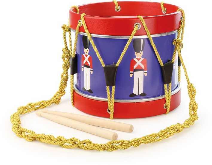 Dřevěný dětský buben s pěknou ilustrací vojenského bubeníka. Balení obsahuje také dvě paličky a zlatý pletený provázek, díky kterému si děti mohou buben zavěsit okolo krku a bubnovat tak při pochodu. Hračky Vilac mají značku francouzské agentury ADEME, to znamená, že tyto dřevěné hračky jsou vyráběny ekologicky. Šetří životní prostředí, neznečišťují půdu, vodu a vzduch, neplýtvají energiemi. Již více než 100 let plní značka Vilac dětské sny. Společnost Vilac sídlí hluboko v srdci pohoří Jura, obklopena horami, jezery a lesy. Tato francouzská společnost vyrábí od roku 1911 dřevěné hračky v klasickém, starodávném stylu s moderními barvami a vzory. Hračky Vilac jsou jedinečné, nikdy nevyjdou z módy a dokáží okouzlit všechny generace. Vilac pomáhá utvářet dětskou představivost svými radostnými ilustracemi či dizajny a reinterpretací klasických hraček, které se jen tak neopotřebují. Děti dostávají na Vánoce a narozeniny spousty hraček, většina z nich je však nezaujme na dlouhou dobu, láska k hračce se nenaplní. Dřevěné hračky Vilac vzbuzují vášeň i o 50 let později, když jako dospělí náhodou najdete v podkroví hračky, které jste jako děti milovali. Vilac již 100 let propojuje děti s hračkami, které si oblíbí a váží si jich. A proč je děti tak milují? To zůstává tajemstvím firmy Vilac.