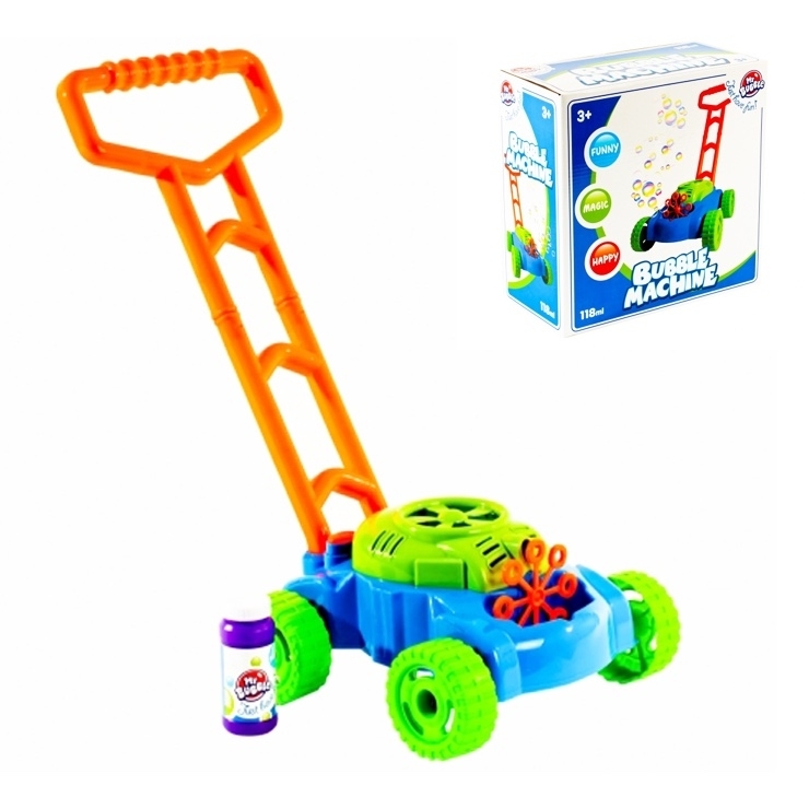 - Unikátní design - vypadá jako malá sekačka na trávu, která však místo trávy vytváří bubliny.