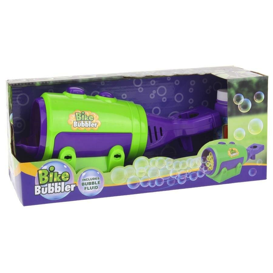 Teraz każda jazda na rowerze będzie niesamowita. Wystarczy przymocować maszynkę do roweru poniżej siodełka, wlać płyn, nacisnąć przycisk i zacznie ona tworzyć bańki w czasie jazdy. Zabawka posiada stabilną podstawę więc może również służyć jako stacjonarna maszynka do baniek, którą można (dzięki niewielkim rozmiarom) postawić praktycznie wszędzie. Zawartość opakowania: - maszynka do puszczania baniek, - płyn do baniek 118 ml, - śrubokręt krzyżakowy. Baterie: 4xAA/LR6 1,5V (brak w zestawie)Wymiary opakowania: 32x10x13,5cm Wymiary zabawki: 26x9,5x10,5cm Wiek: 3+