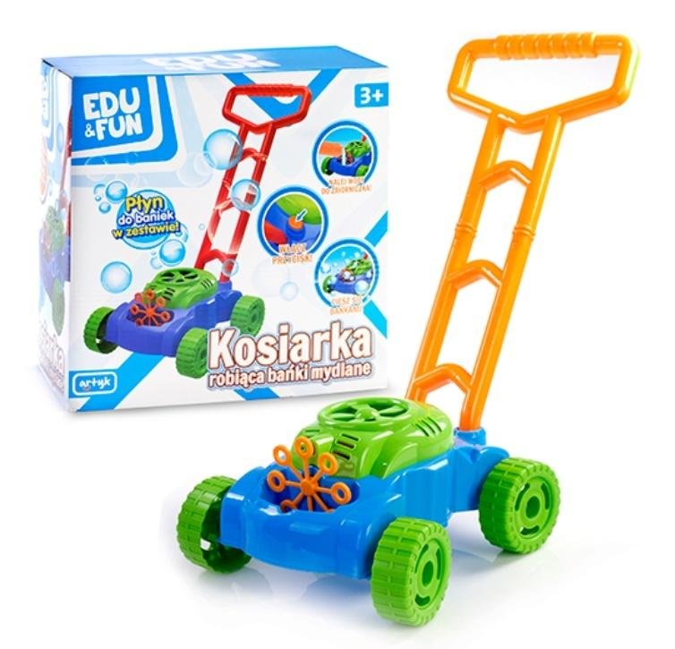 W ZESTAWIE: KOSIARKA, PŁYN DO ROBIENIA BANIEK 118 ML., WYSOKOŚĆ PO ZŁOŻENIU 52 CM., WYM. OPK: 28 X 28 X 14 CM., 3+, BATERIE: 3 X AA 1,5V, NIE DOŁĄCZONE