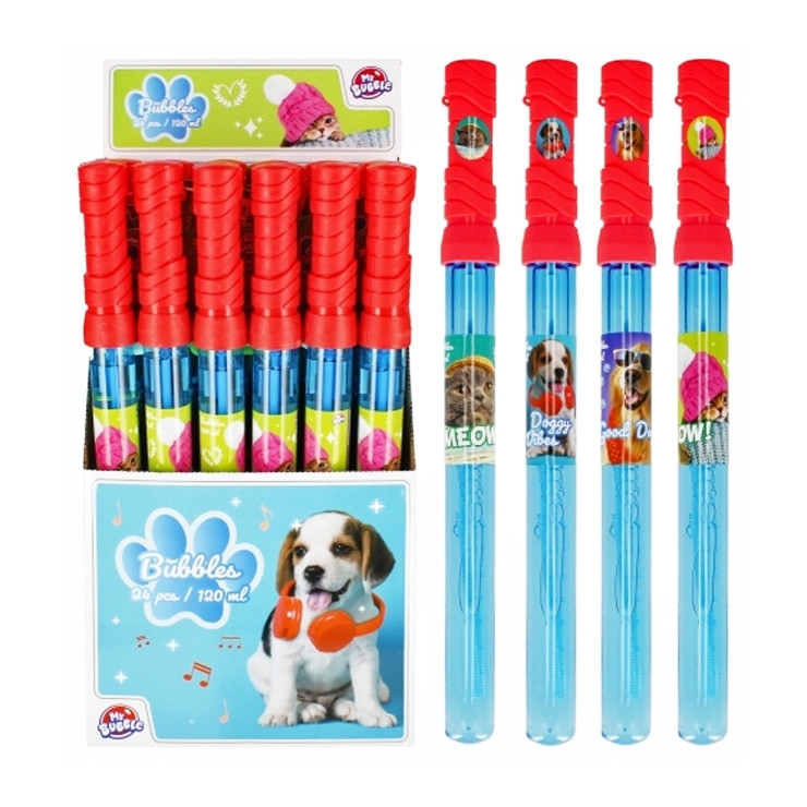 Bublifuk pejsek, má objem 120ml a délku 37cm. Na výběr ze čtyř variant. Baleno v boxu po 24 kusů. Cena je za 1 kus. Vhodné pro děti 3+.