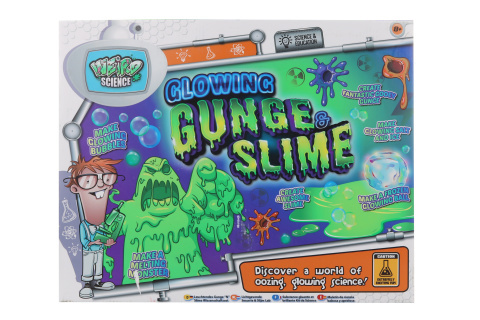 Sada na výrobu svítícího slizu obsahuje 3x barvivo, kalíšek na míchání, nálevku, pipetu, 2 lahvičky se svítítím práškem, lahvičku s bublifukem a další doplňky. Součástí je také návod k použití. Rozměry balení cca 35,5 x 28 x 6 cm. Věk 8+ číst celé
