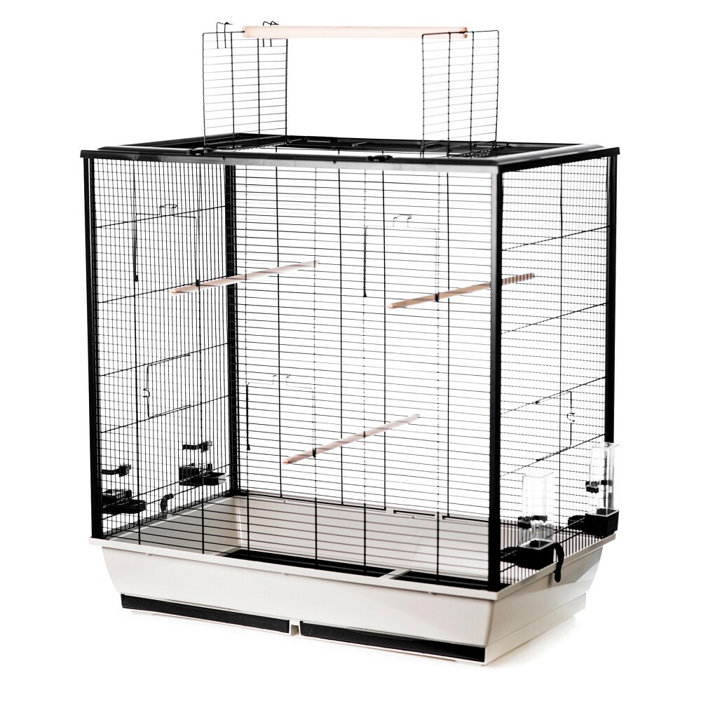 Odlehčená, rozebíratelná klec Fiona pro středně velké papoušky s plastovým rámem.• Součástí klece je základní vybavení: 3 x bidýlko, 1 x horní bidlo, 4 x krmítko/napáječka• Dno klece má dva výsuvné šuplíky, díky kterým je čištění snadnější a pohodlnější• 5 x dvířka pro snadný přístup• Černá barva mřížíRozměry: 78 x 48 x 81,5 cmRoztečdrátů: 1,2 cmSíladrátů: 3 a 1,6 mmVáha: 8 kgBarvadna: světle šedá