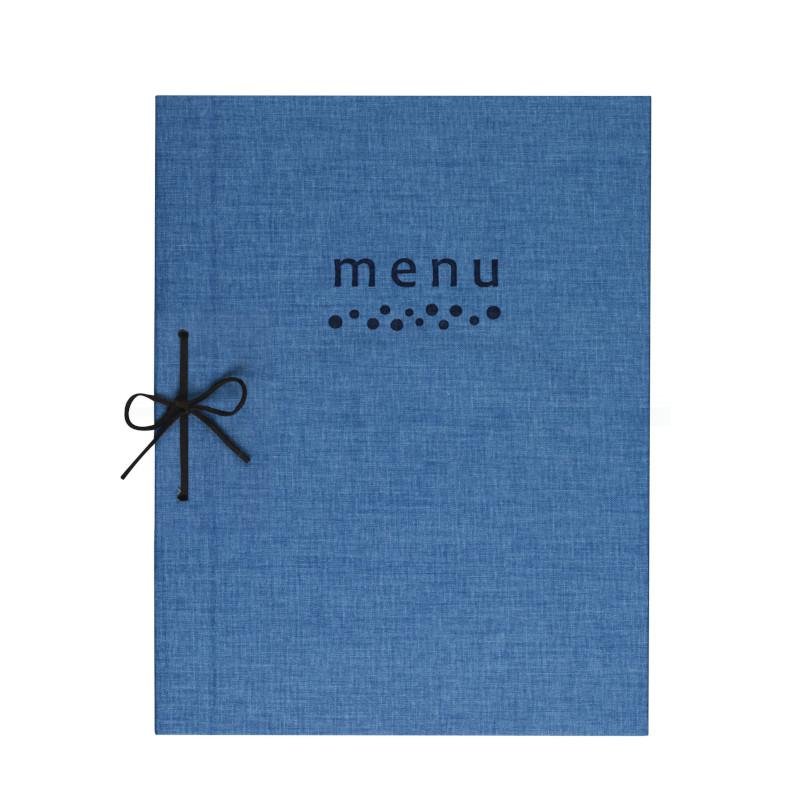 Jednoduchý, sofistikovaný a stylový - přesně to představuje tento obal vázaný koženou šňůrkou. Chraňte svá papírová menu před rychlým opotřebením s touto modrou kartou vhodnou pro nabídky natištěné na formát A4. Parádně se s ní manipuluje a snadno se uchopuje. Ideální pro kavárny, bary a restaurace s pravidelně se obměňujícím menu. Vyrobeno z Telflexu.
