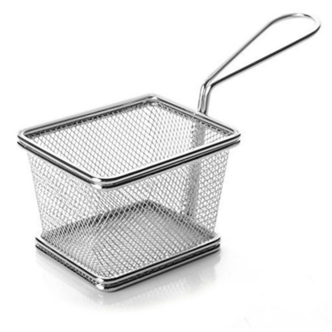 Menší servírovací košík umožňuje smažit malé množství zeleniny, brambor, krevet nebo čehokoliv jiného. Také parádně poslouží k samotné prezentaci pokrmů na jídelním stole. K představování doporučujeme nejprve vložit olejový papír do košíku a až na něj umístit smažené jídlo. Tak dosáhnete jednoduchého a stylového efektu. Košík se vyrábí z kvalitní nerezové oceli a zajišťuje elegantní způsob prezentace vašich pokrmů.