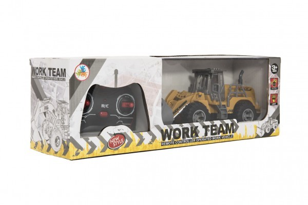 Auto Buldozér RC plast 22cm na dálkové ovládání 27MHz na baterie se světlem v krabici 37x12x11cm