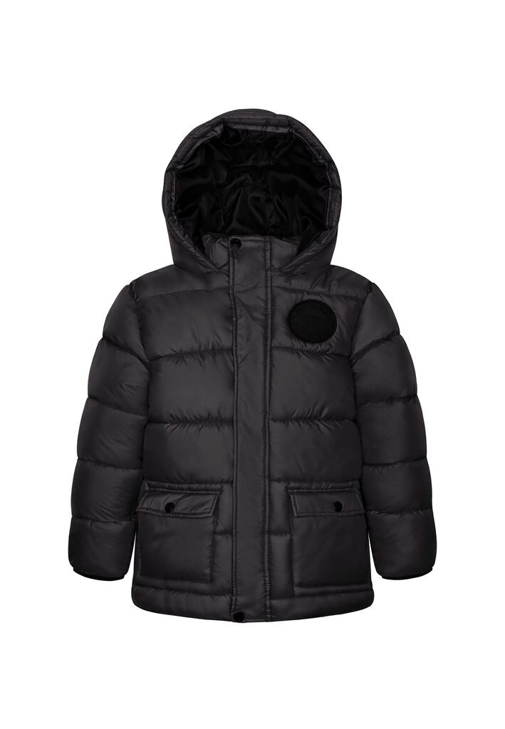 Kabát chlapecký nylonvý Puffa Minoti 11COAT 11 prodloužená, barva černá. Dobře chrání před chladem, deštěm a větrem. Má kapuci, kapsy s nášivkami, elastické rukávy. Materiál bez škodlivých barviv a chemikálií, naprosto bezpečný pro vaše dítě.