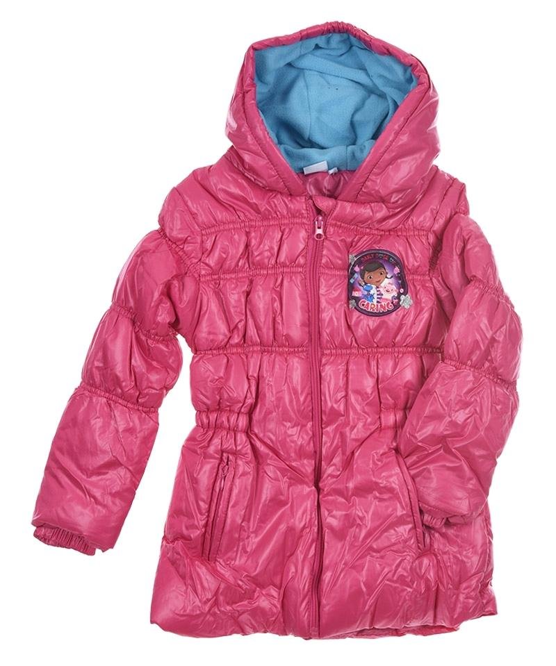 Malinové provedení. Prodloužená zimní bunda Plyšáková Doktorka. S vatelínovou výplní, polyesterová podšívka. 100 % polyester. Oficiální licence.