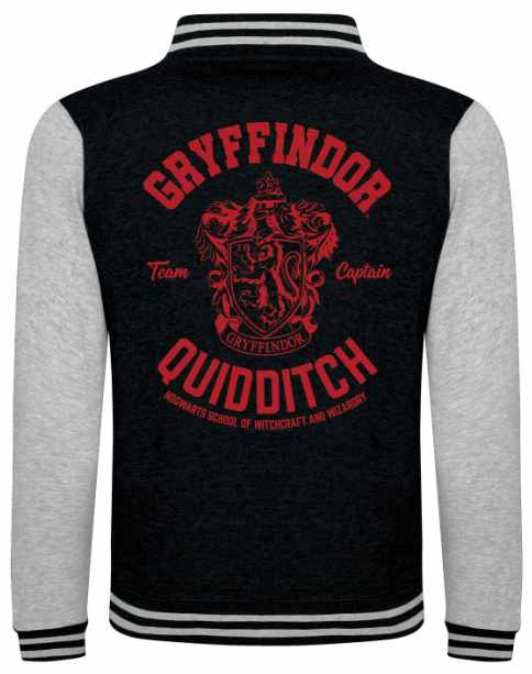 Atraktivní černá bunda s šedými rukávy a grafickým potiskem Gryffindor Quidditch (Nebelvírský Famfrpál). Mikina je vhodná pro všechny fanoušky Harryho Pottera.