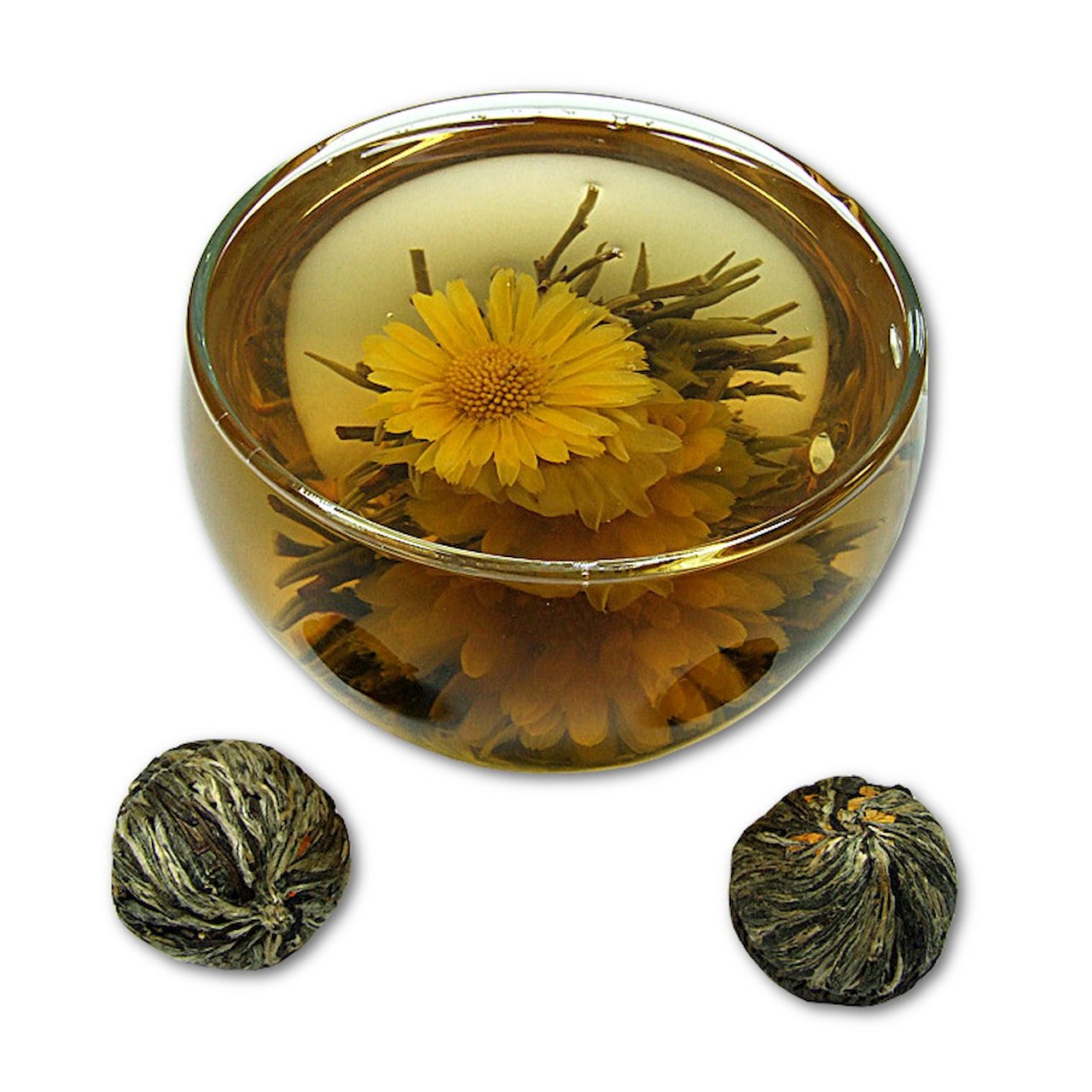Kvetoucí čaj Měsíček je jedinečnou kombinací zeleného čaje a svinutého květu měsíčku, který se po zalití postupně rozvine a představí tak působivou vizuální podívanou. Tento čaj vyniká svou výraznou a příjemnou chutí, která vás osvěží a potěší vaše chuťové buňky. Pro maximální potěšení z pití je nejlepší tento kvetoucí čaj připravovat ve skleněné nádobě, což umožní sledovat postupné rozvíjení květu a zároveň podtrhne estetický zážitek z konzumace.