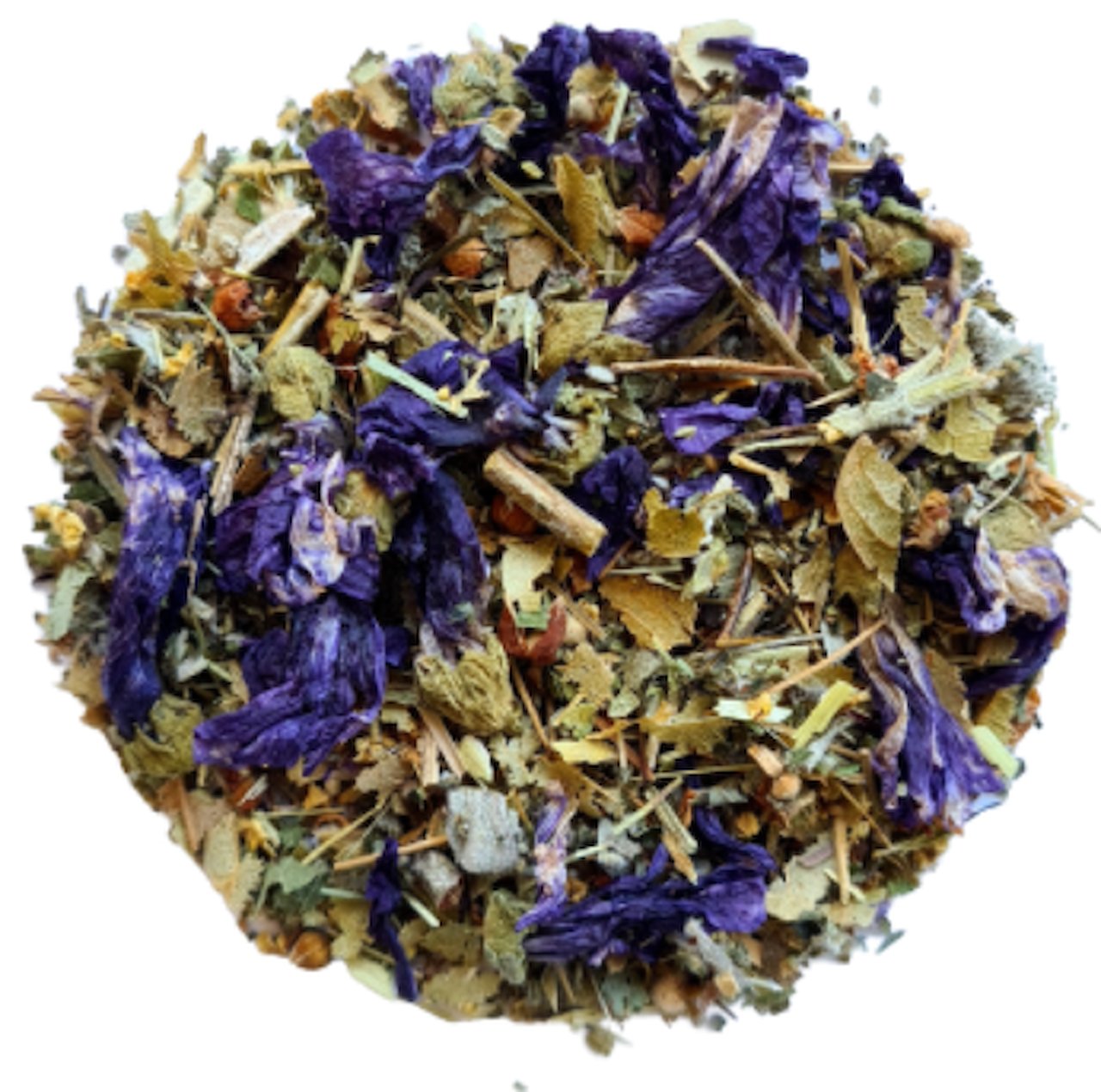 Složení bylinkové směsi Zimní čaj: Složení: bez květ, šalvěj nať, lípa květ, třapatka nať, tužebník nať, borůvka nať, sléz květ, ostružiník list Příprava: