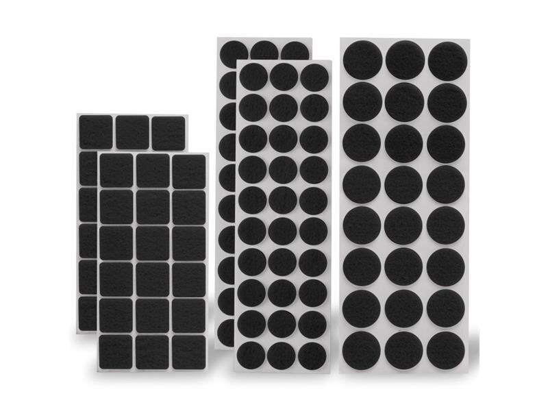 Naše černá filcová podložka FAMILY 11110BK je perfektní volbou pro ochranu podlah proti poškození způsobenému pohybem nábytku. Díky kombinaci kvalitního filcu a pevného lepidla zajistí nejen bezpečné uchycení na spodní část nábytku nebo technických předmětů, ale také umožní snadný a tichý pohyb bez poškrábání povrchu podlahy. Tento set obsahuje celkem 120 kusů podložek různých tvarů a rozměrů, takže najdete vždy tu správnou velikost pro různé druhy nábytku, například židle nebo stoly.