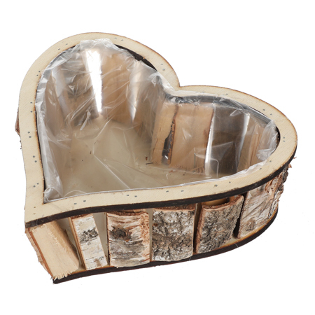Proměňte svůj interiér nebo zahradu v originální prostor plný přírodní krásy díky unikátnímu obalu na květiny ve tvaru srdce z březového dřeva.