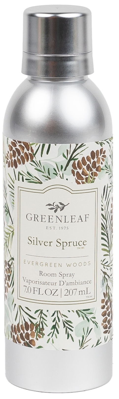 Prostorová vůně ve spreji Silver Spruce bez aerosolu je součástí kolekce Silver Spruce značky Greenleaf