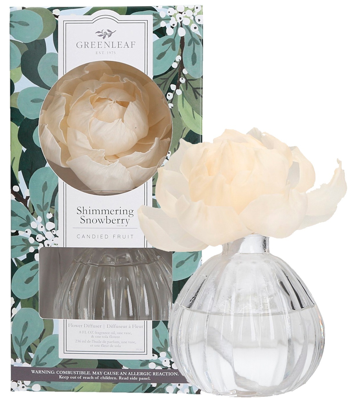 Květinový difuzér Shimmering Snowberry je součástí kolekce Shimmering Snowberry oblíbené značky Greenleaf
